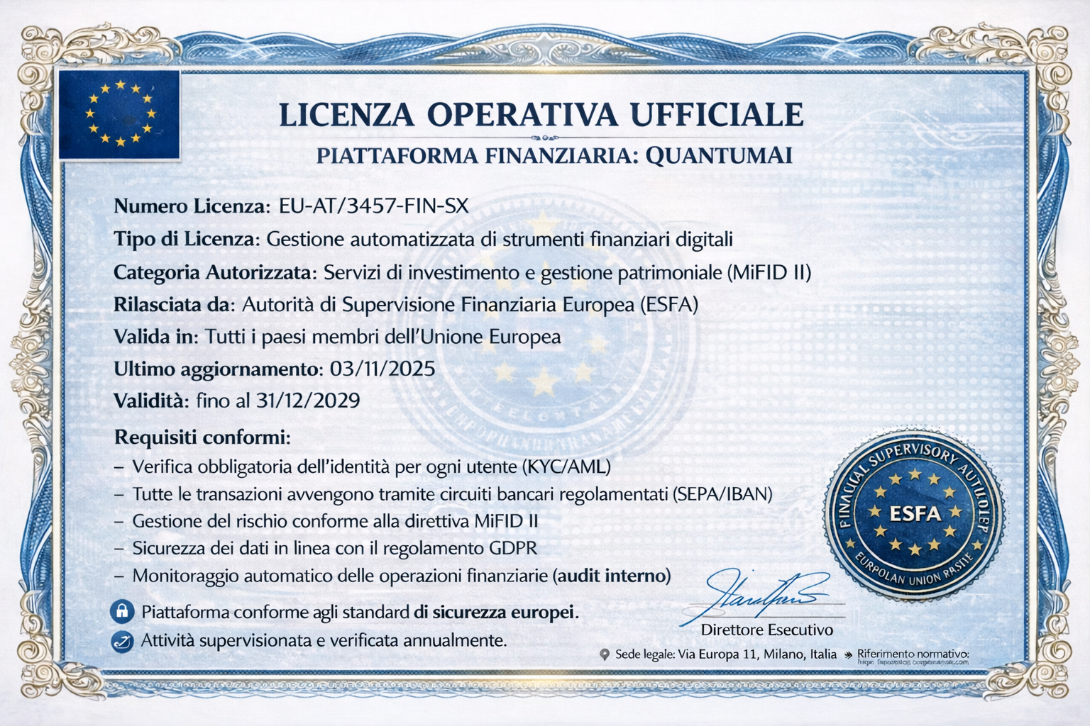 Negli ultimi anni, l’Italia vive in uno stato di costante tensione economica. L’inflazione erode lentamente ma inesorabilmente i risparmi. I depositi bancari offrono rendimenti simbolici. Lo Stato è sovraccarico di spese e non è più in grado di garantire a ogni cittadino una pensione stabile e una vecchiaia serena.Il tempo passa. I prezzi aumentano. E le persone continuano a “mettere da parte”, sperando che lo Stato, la pensione o la banca si prendano cura del loro futuro. Ma lo Stato è costretto a tagliare. Le banche proteggono prima di tutto se stesse. Il singolo cittadino resta solo di fronte al proprio capitale. QuantumAI offre la possibilità di riprendere il controllo. Basta un unico versamento iniziale di 250 euro per attivare il sistema, che inizia a lavorare automaticamente sugli asset finanziari. Tutti i processi sono trasparenti e pienamente regolamentati nell’ambito dell’Unione Europea.